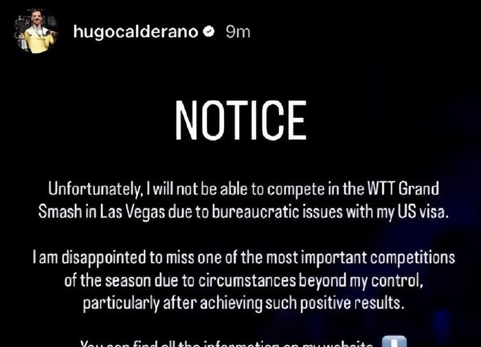 拉斯维加斯这地界要热闹了。2025年WTT美国大满贯啊。美洲头一回办这种顶级乒乓赛事。5月开打的比赛总奖金155万美金。换算人民币1111万。单打冠军直接捞2000积分。够各路高手打破头了。结果开赛前炸出个消息。巴西那个雨果突然在ins上发小作文。说签证卡壳去不了。这哥们原话是"不可控因素导致错过重要赛事"。具体啥原因没说清。让粉丝去他官网扒细节。整得神神秘秘的。要我说美国签证系统真该骂。去年东京大满贯可没见这么多幺蛾子。